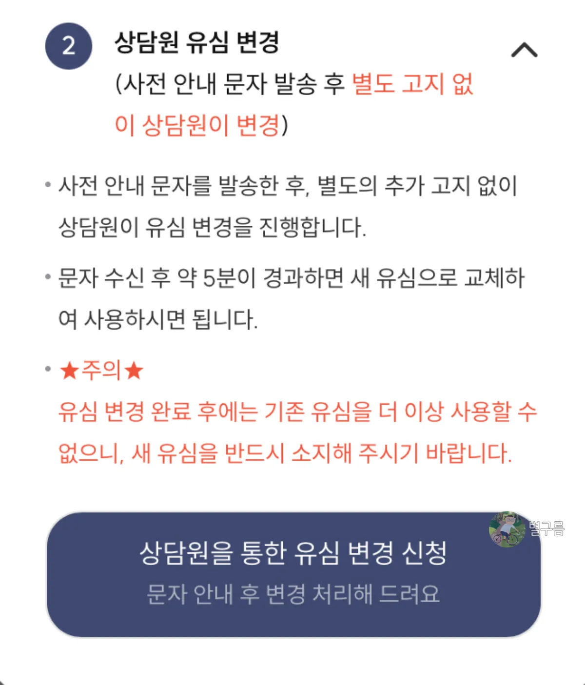 | 3단계 | 사전 안내 문자 수신 후 약 15분 뒤 새 유심 장착 및 사용 가능 |