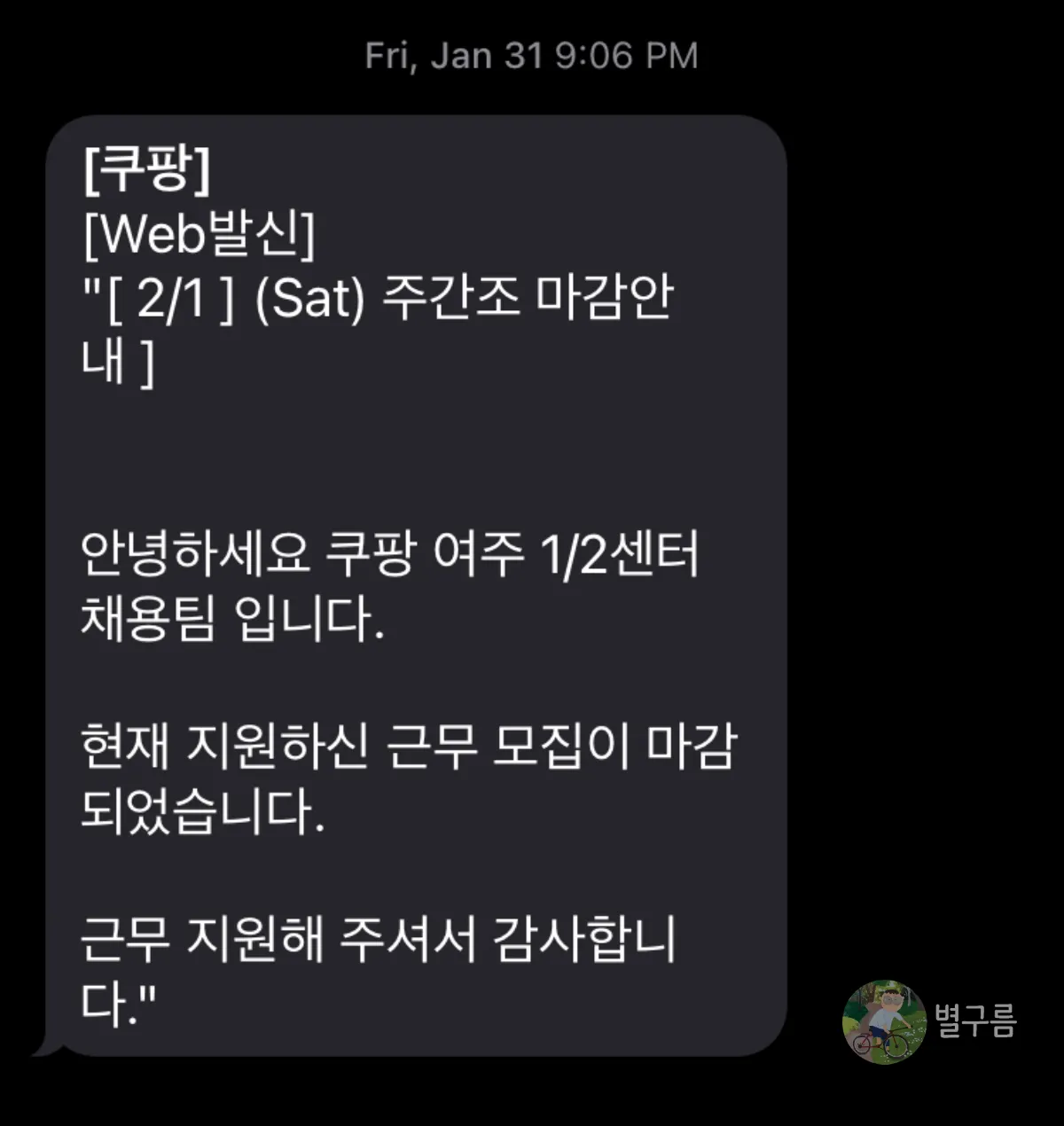 사실 이번에 6번 계속 거절당하고 7번째 근무 확정 문자를 받았다.